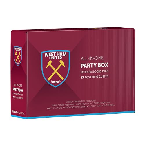 West Ham United Official Party Supplies Set, 77-Piece Football Party Decorations, Serves 6, with Balloons and Tableware | For Birthday & Matchday celebrate