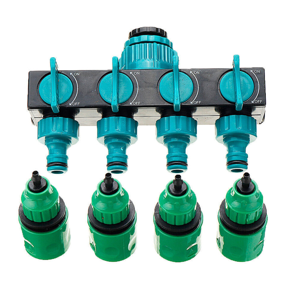 (1/4) Universal 4 Way Garden Hose Splitter Tap Manifold for 1/2" 3/4" 1" Faucet Shut Off Connector Water Pipe Divider Quick Adapter Outdoor Irrigation