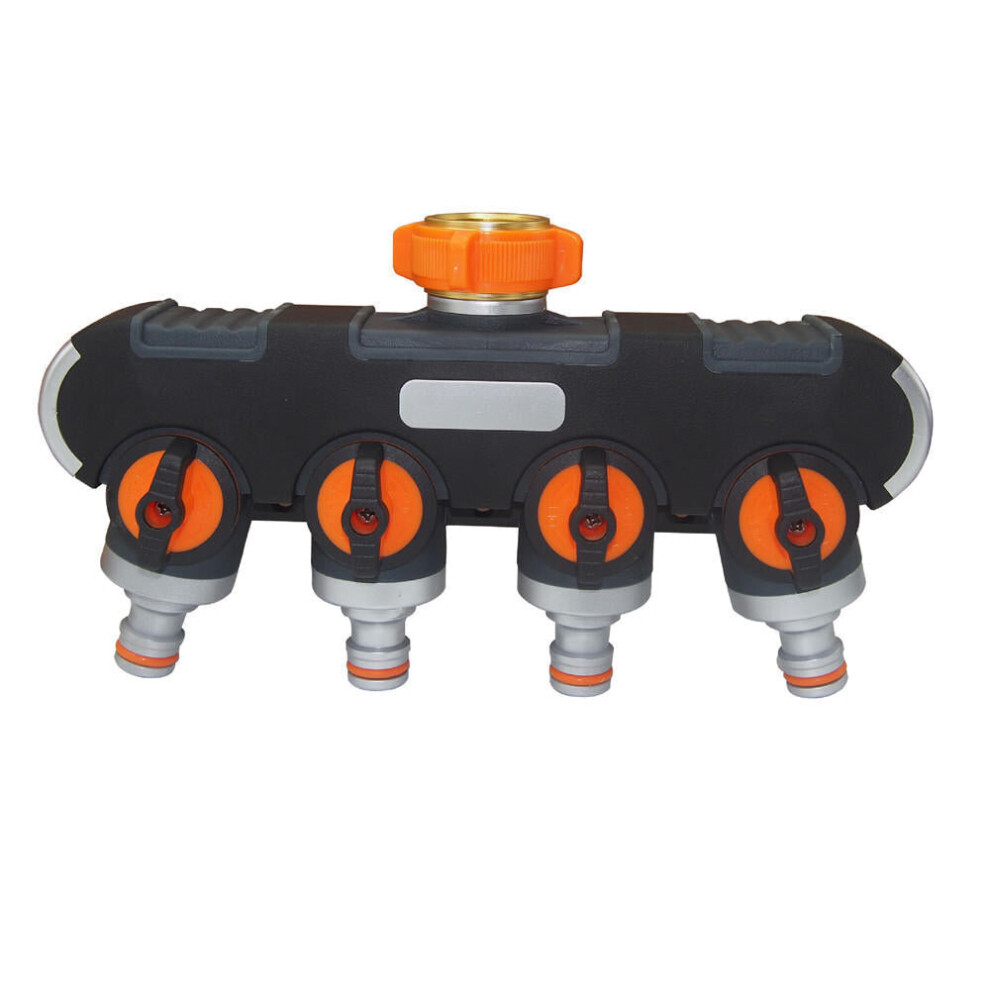 (EU Standard) Universal 4 Way Hose Faucet Manifold Water Segregator for 3/4" 1/2" Garden Tap Splitter Pipe Divider Quick Connector Nozzle Shut Off Con