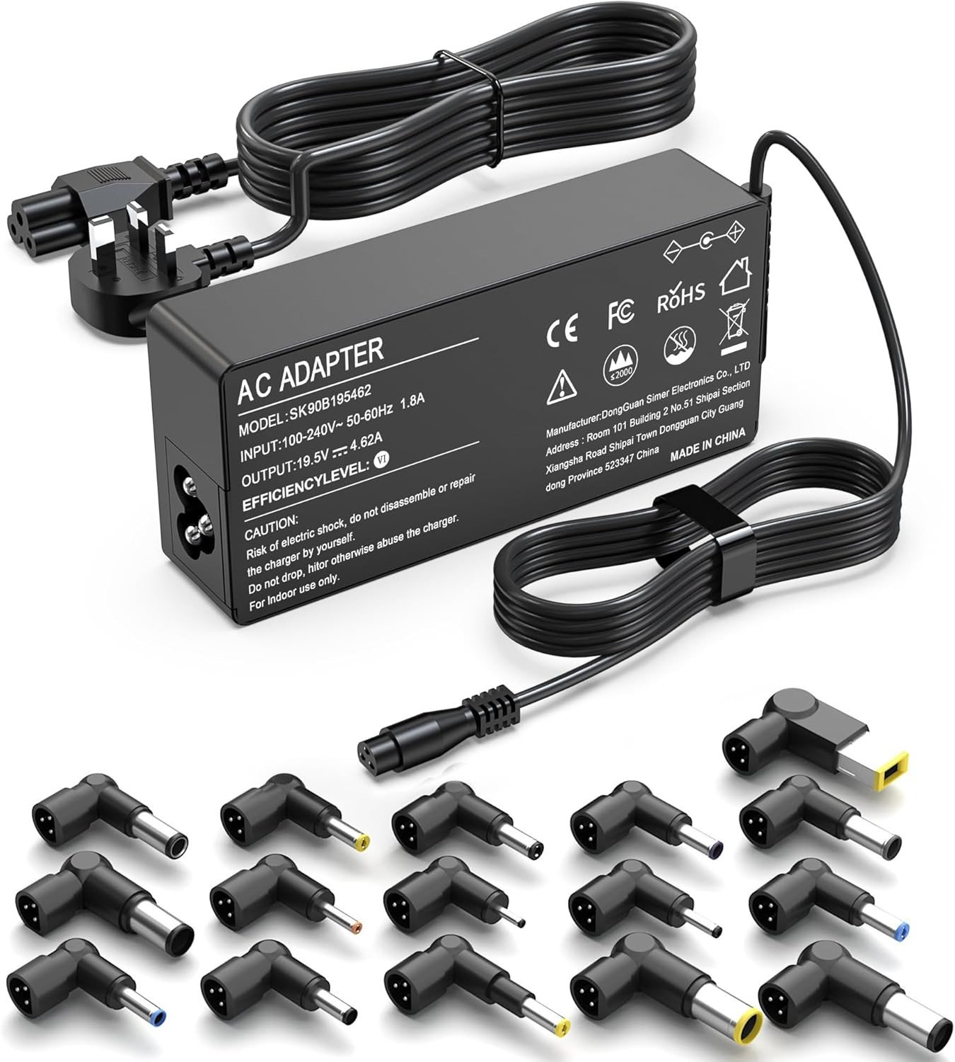 SiKER Universal Laptop Charger with 16 Tips, 90W AC Adapter Compatible with HP DELL Asus Acer Toshiba Notebook Power Supply Cord
