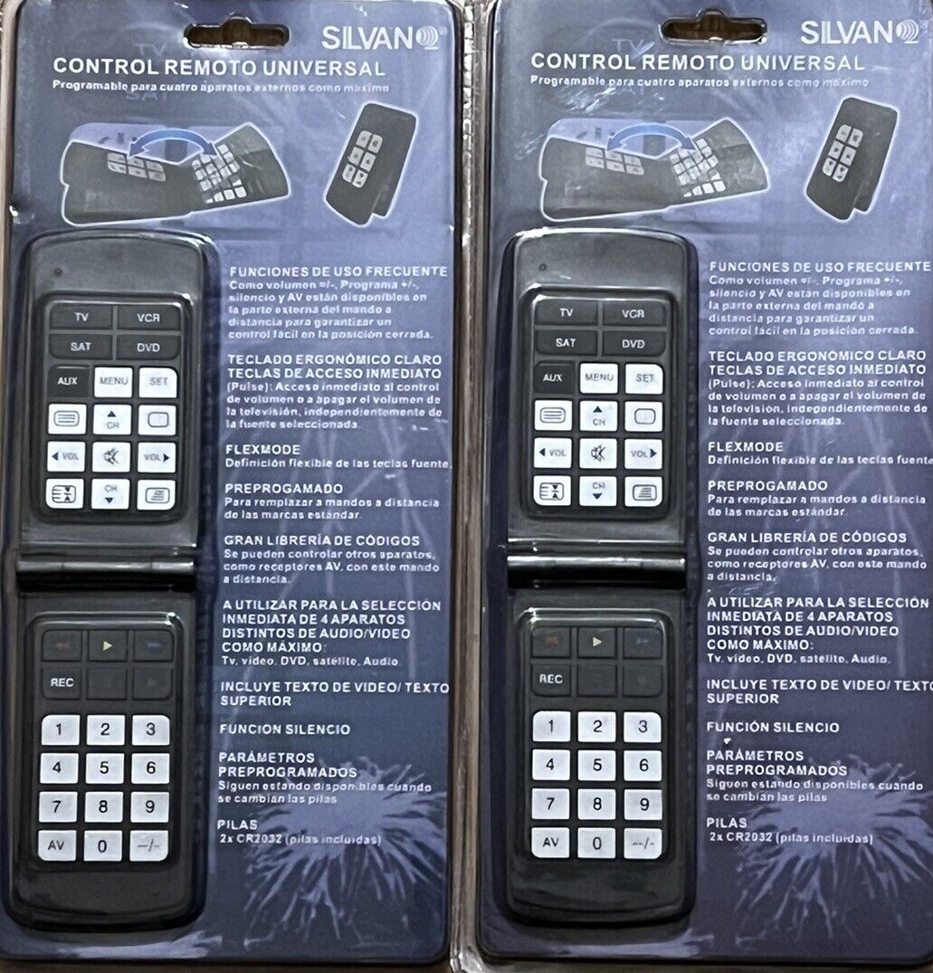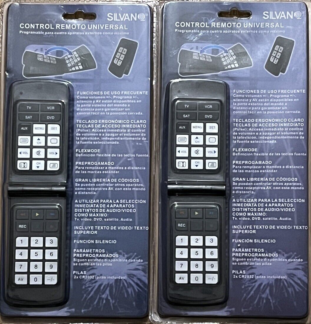 2 PACK SILVAN UNIVERSAL REMOTE CONTROLS FOR TV, VIDEO, DVD, SATELLITE, AUDIO NEW