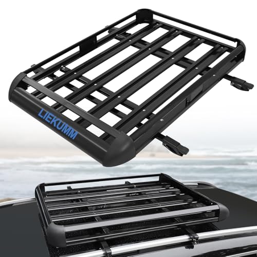 LIEKUMM 127 x 97 cm Roof Rack, 100 kg Load Capacity Aluminium Car Roof Basket, Universal Luggage Holder Rooftop Carrier, Universal Roof Rack for SUV, Truck and Car, Black