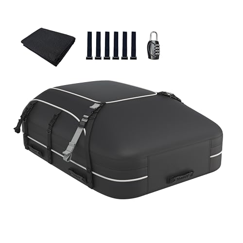 WORKKOOL 15 cu ft Waterproof Roof Bag with Anti-Slip Mat & Lock - Universal Car Top Storage for SUV/Estates - Foldable Cargo Carrier (44"x34"x17")
