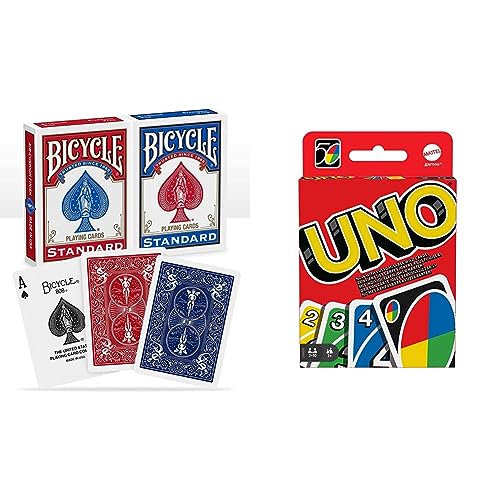 Bicycle® Standard index Playing Cards, 2 Decks, Red & Blue, Air Cushion Finish, Professional, Superb Handling & Durability & UNO - Classic Colour & Number Matching Card Game - 112 Cards