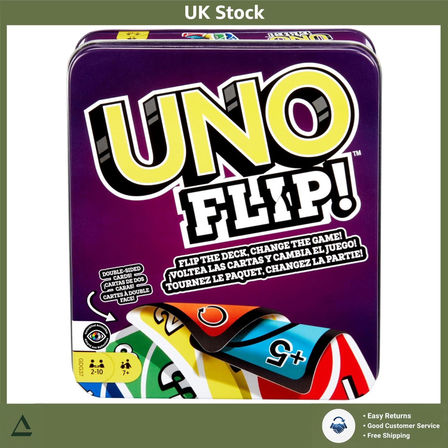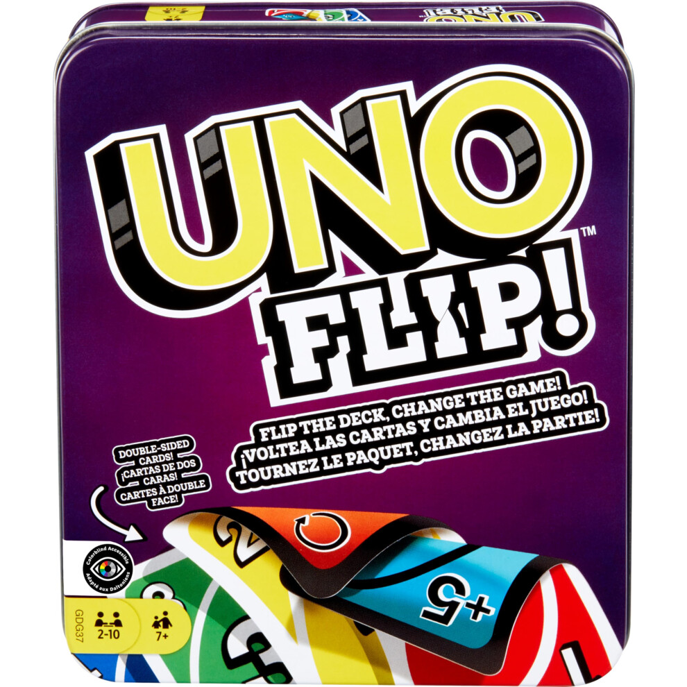 Mattel Games UNO FLIP! Family Card Game, with 112 Cards in a Sturdy Storage Tin, Makes a Great Gift for 7 Year Olds and Up, GDG37