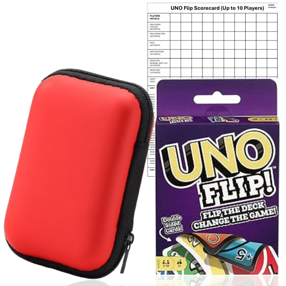 Uno Flip Card Game & Travel Case + 4 x Scorecards | Card Games, Travel Games, C