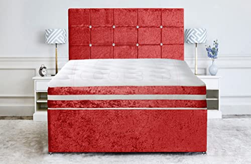 COOL BED Small Double Divan Bed with Mattress and Headboard - Upholstered Durable Bed Frame with Optional Storage Drawers (RED, 4FT 2 DRAWERS SAME SIDE)