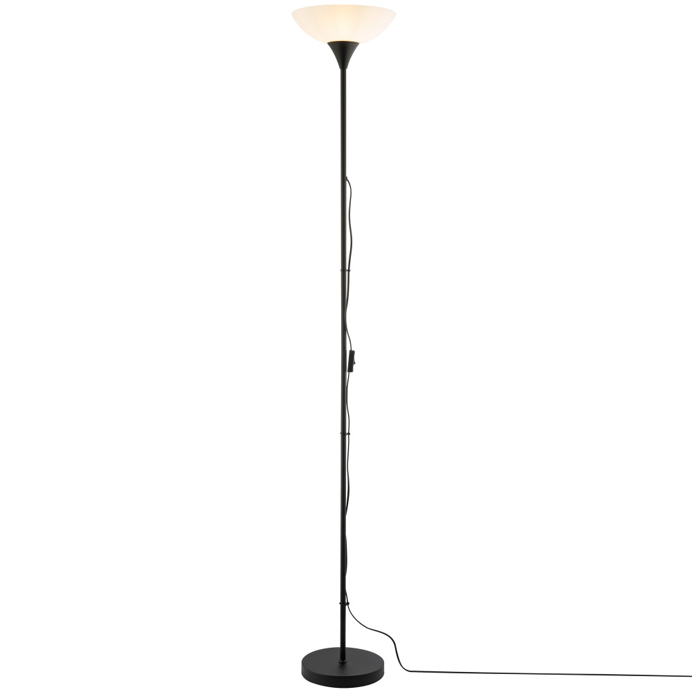Modern Black Switched Uplighter Floor Lamp with Opal White Polycarbonate Shad...