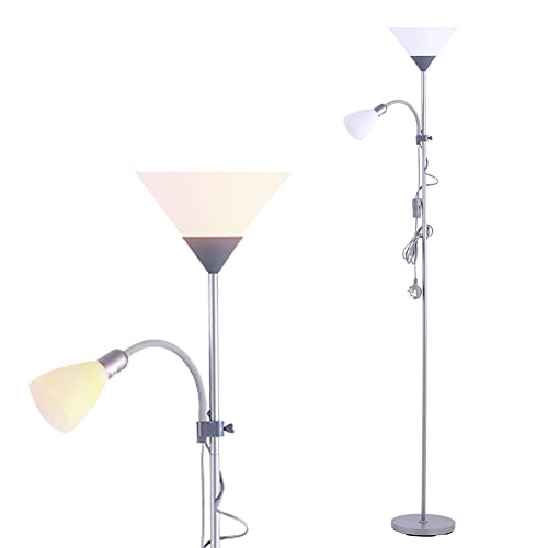 INMOZATA Standard Lamps Living Room, Uplighter Floor Lamp, Modern Mother & Child Tall Floor Lamp for Living Room, Bedroom, Lounge, Office(Silver)