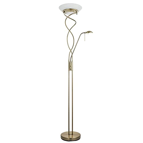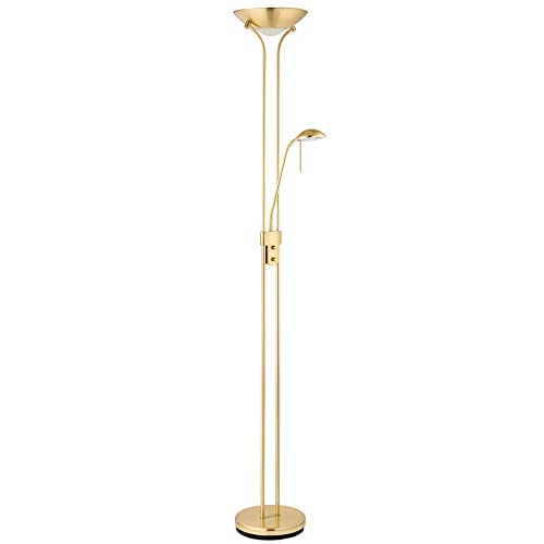 Betta Lighting Mother and Child Uplighter Floor Lamp with Reading Light – Satin Brass with Adjustable Reading lamp - Standing Uplighter for Living Room, Bedroom, Dining Room – G9 33W and R7s 230W