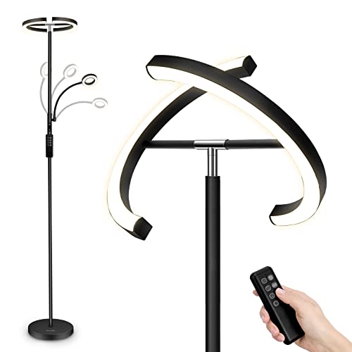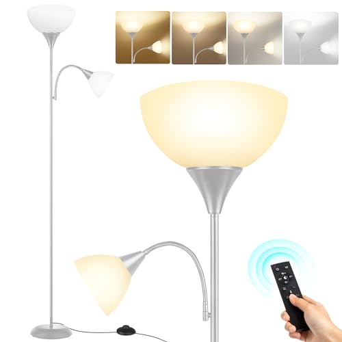OUTON Floor Lamps for Living Room, Mother and Child Lamp with Remote Control, Uplighter Floor Lamp with Reading Lamp, Dimmable & 3000K-6000K Color Temperatures, Tall Standing Lamp for Bedroom, Office