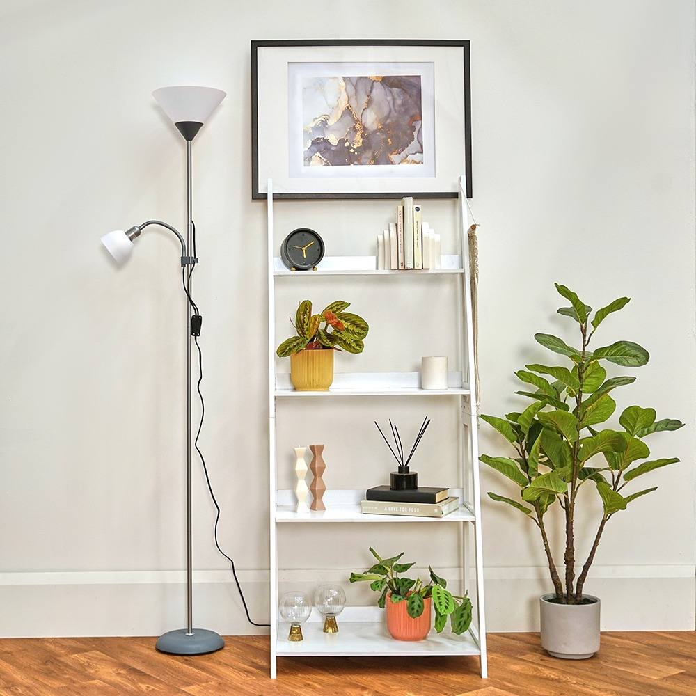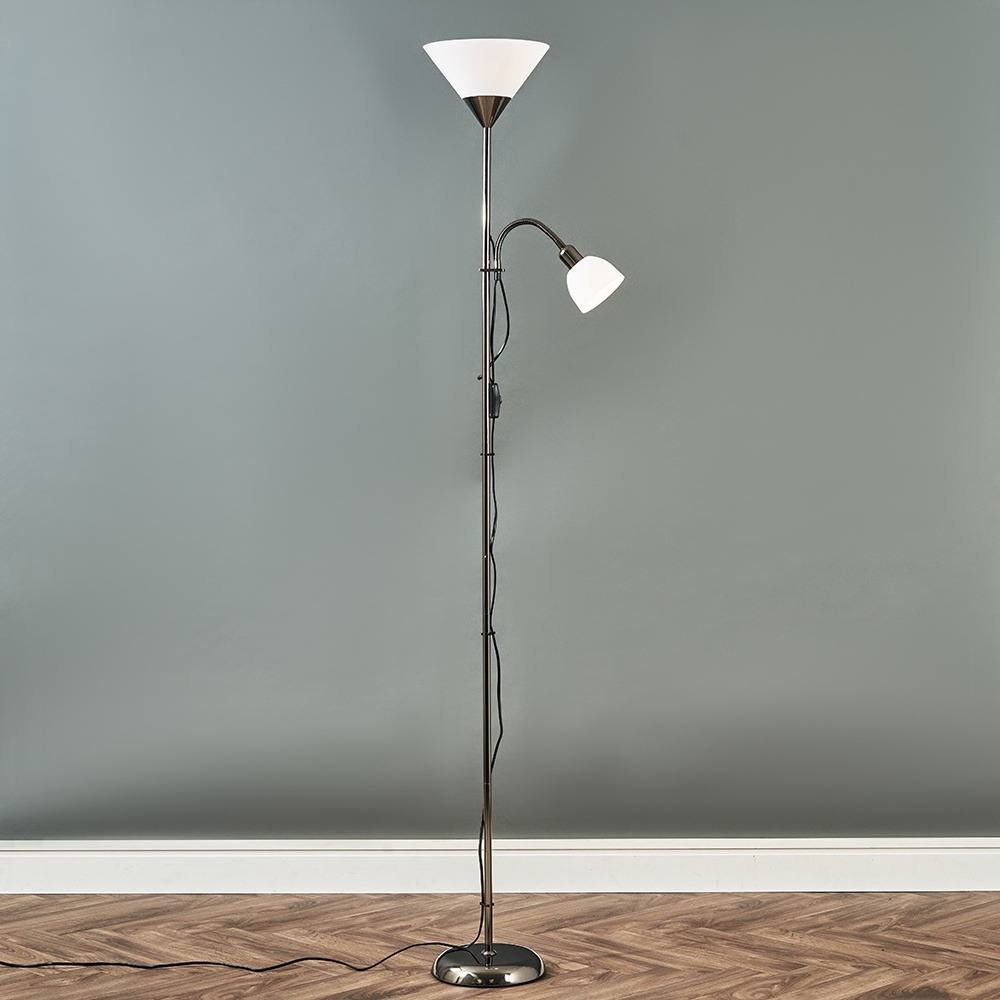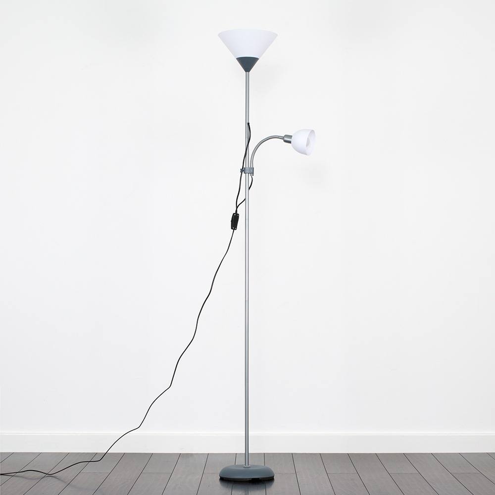 ValueLights Mozz Mother and Child Uplighter Floor Lamp with Adjustable Side Lamp in Silver