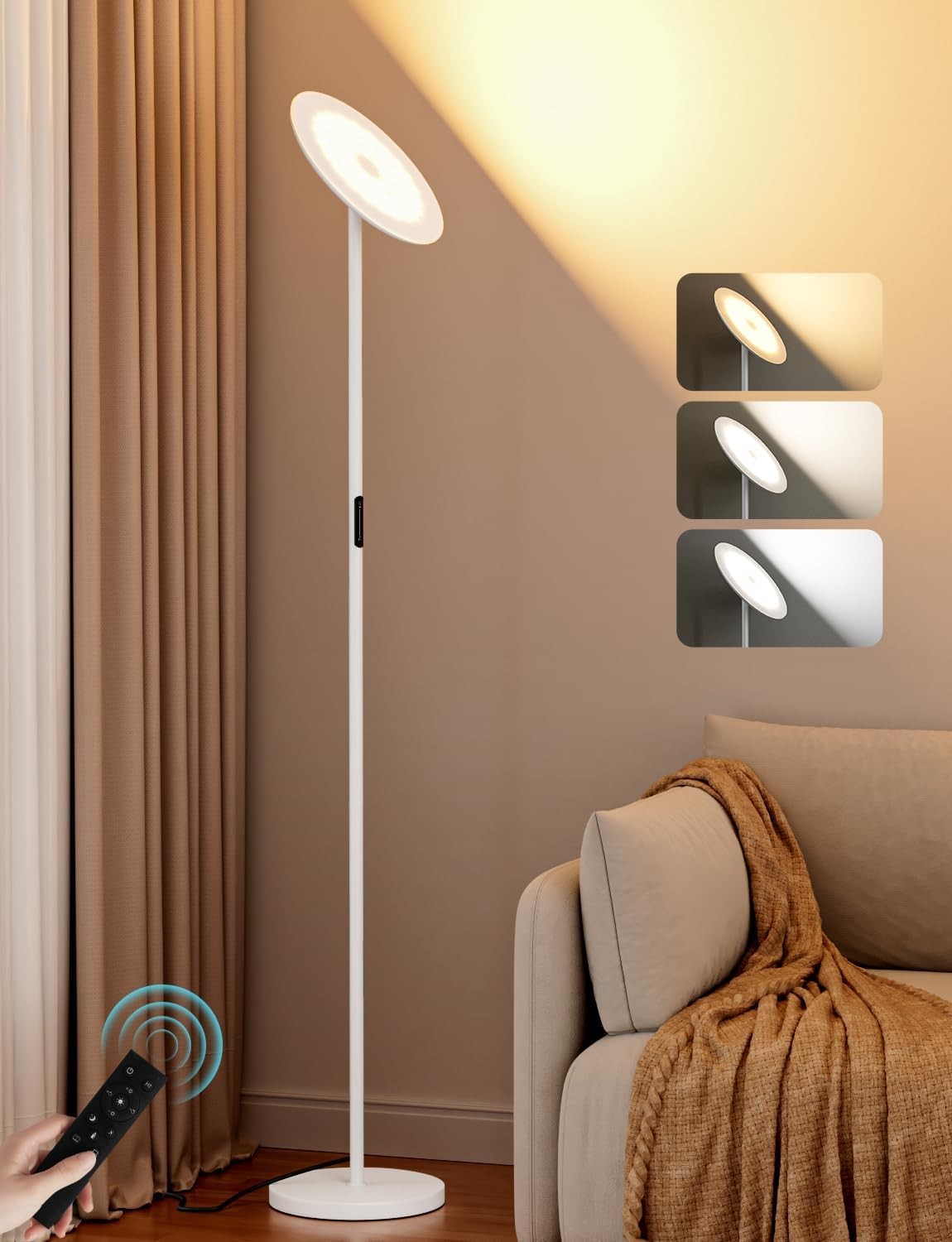 Aooshine LED Uplighter Floor Lamp for Living Room, 36W White Reading Standing Lamp for Bedroom, Remote Touch Control & Stepless Dimming, 69''Tall Floor Reading Lamp for Living Room Bedroom, Office
