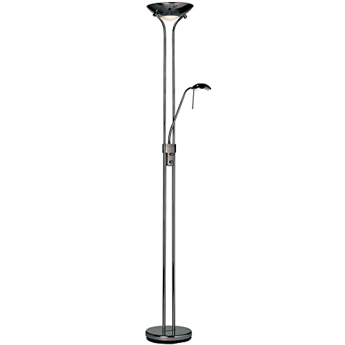 National Lighting Mother and Child Uplighter Floor Lamp with Reading Light - Black Chrome Finish Floor Lamps for Living Room R7s/G9 Bulbs (Not Included)