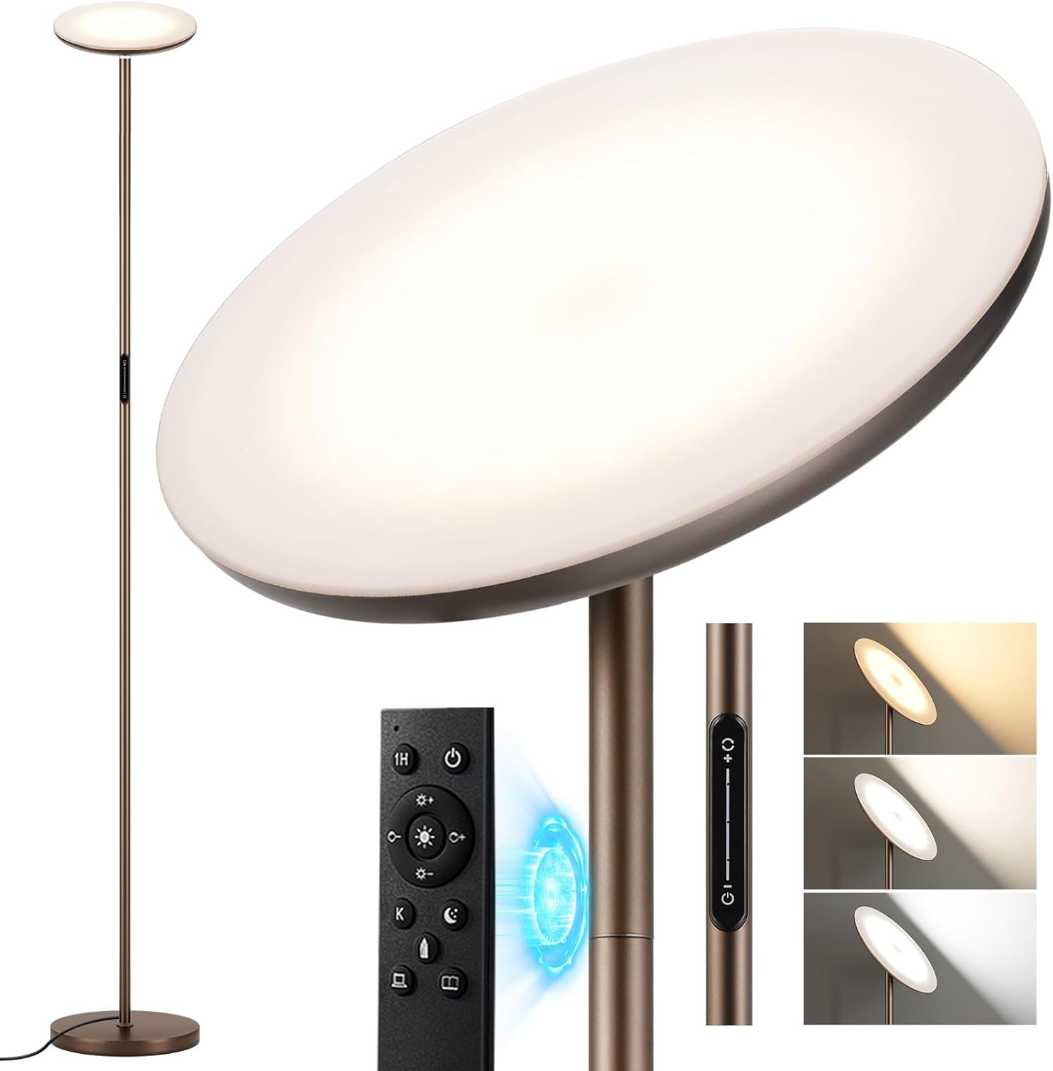Aooshine LED Uplighter Floor Lamp for Living Room, Brown Reading Standing Lamp