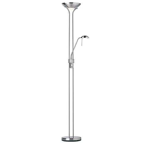National Lighting Mother and Child Uplighter Floor Lamp with Reading Light - Satin Chrome Finish Floor Lamps for Living Room R7s/G9 Bulbs (Not Included)