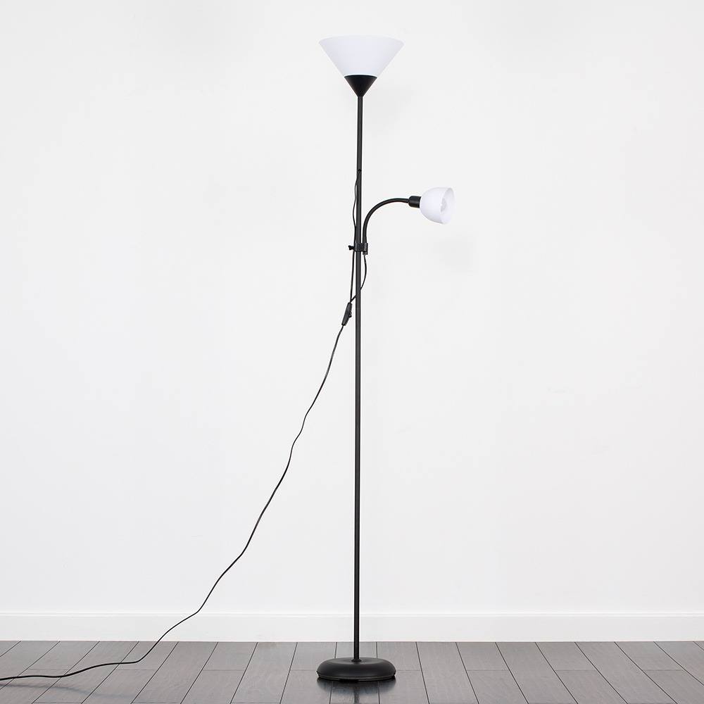 ValueLights Mozz Mother and Child Uplighter Floor Lamp with Adjustable Side Lamp in Black
