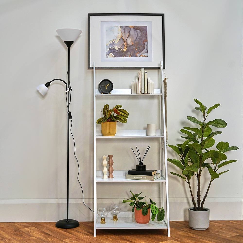 MiniSun | Modern Gloss Black Uplighter Floor Lamp with a White Shade | Floor Lamps & Torchieres, Home Décor & Improvement Essential