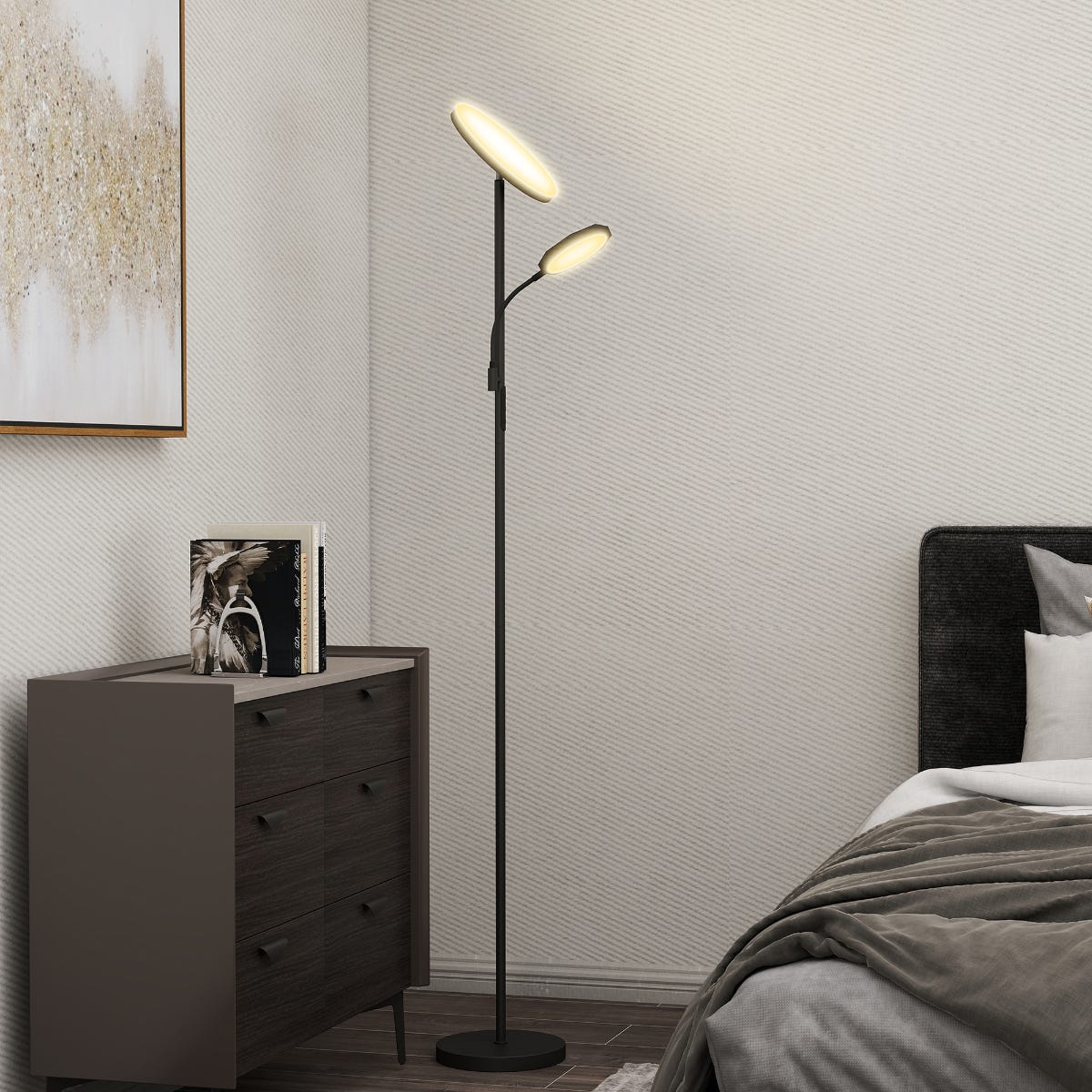 INMOZATA Standard Lamps Living Room, Uplighter Floor Lamp, Modern Mother & Child Tall Floor Lamp for Living Room, Bedroom, Lounge, Office(Black)