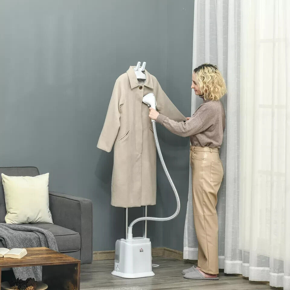 Homcom Upright Garment Clothes Steamer With 6 Steam Setting, 45s Fast Heat-up, 1.7l Water Tank And 45min Steamer, Wrinkle And Odour Remover, White