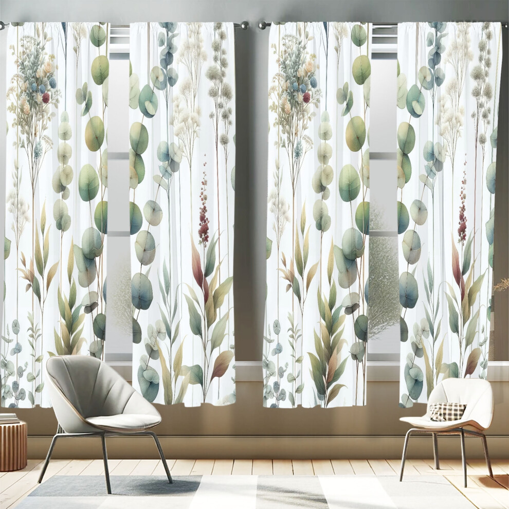 Ambesonne Green 4-Panel Curtains, Watercolor Look Urban Jungle, 56"x84", Slate Brown White Khaki