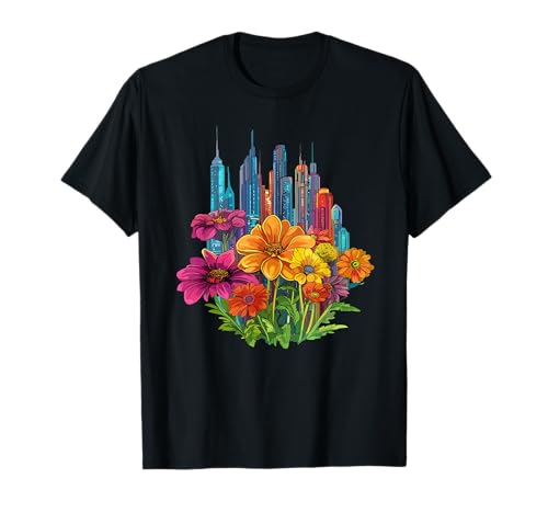 Floral Cityscape Urban Jungle Wildflowers Bloom T-Shirt