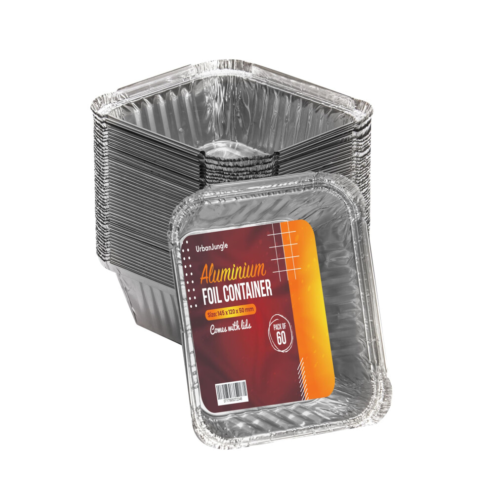 UrbanJungle 60 X Aluminium Foil Trays - Food Containers with Lids - Ideal for Storage, Baking, Roasting, BBQ, Cooking, Meal Prep Tray - Freezer Conta