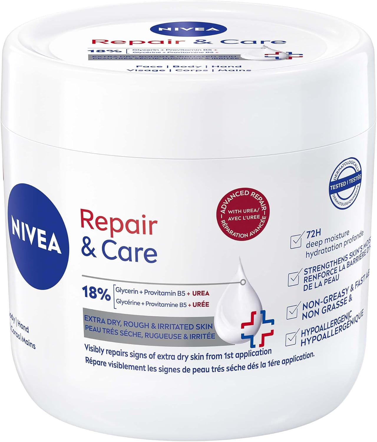 NIVEA Repair & Care Urea Cream 400ml Deep Moisture Dry Skin Face Body Hand UK