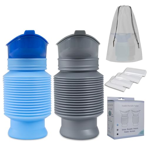 Pee Bottles for Men, Collapsible Emergency Urinal With Disposable Replacement Bags, Leakproof Car Pee Bottle for Men and Women, 750ml, 2-Piece Set Urine Bottle, Travelling, Traffic Jams & Hiking
