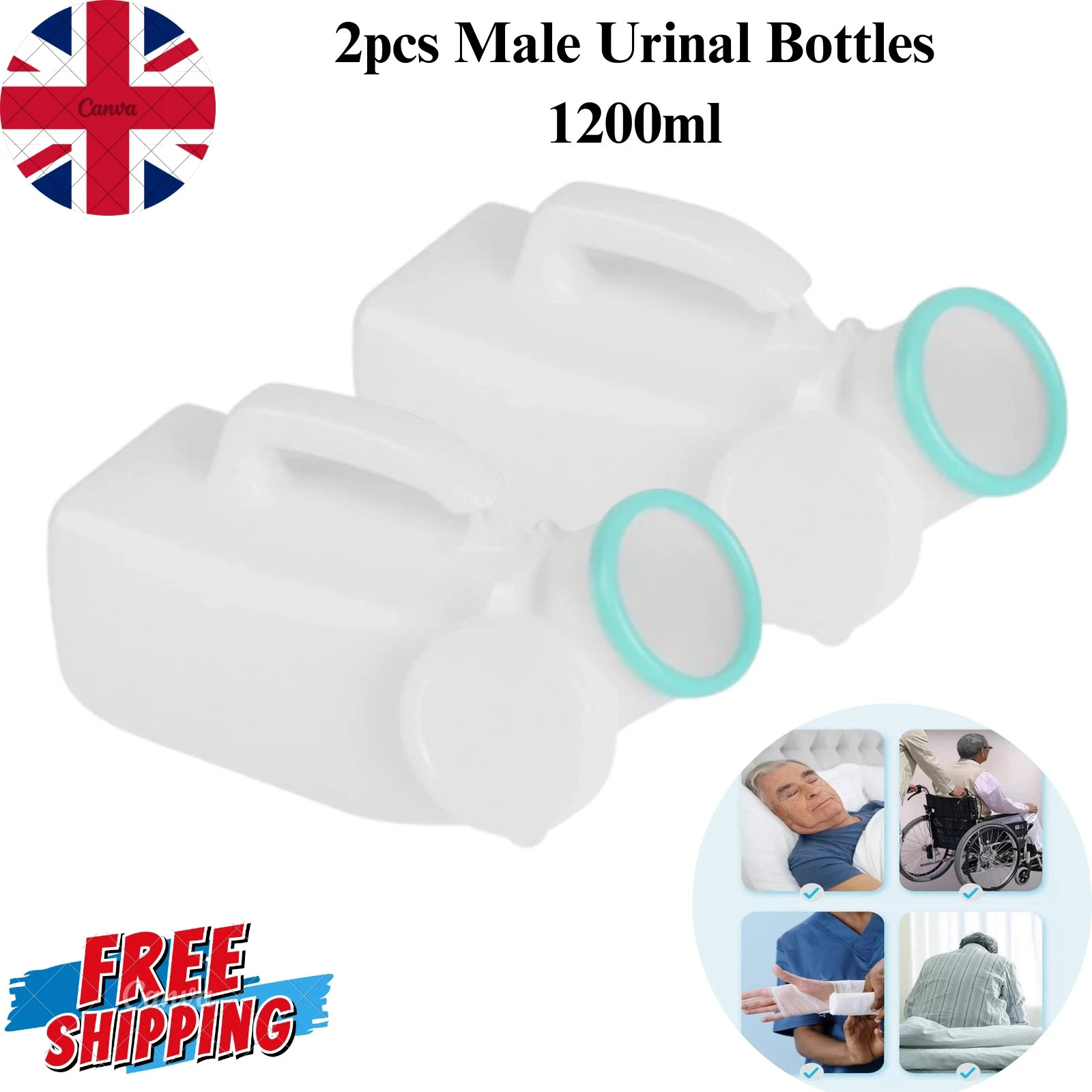 2pcs Male Urinal Bottle 1200ml | Pee Bottles for Men | Spill-Proof & Portable UK