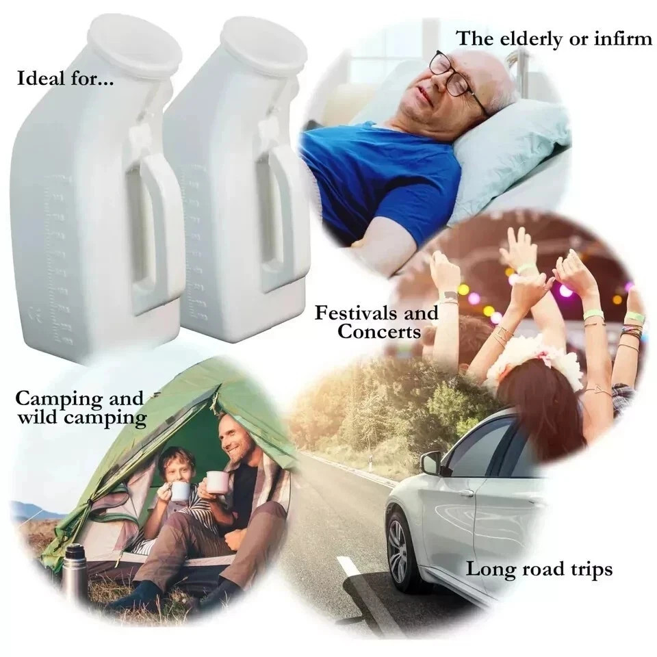 2 x Male Urinal Bottle 1200ml Pee Bottles for Men Hosp Spill-Proof & Portable UK