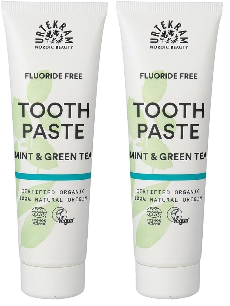 Urtekram Mint and Green Tea Toothpaste 75 ml (Pack of 2), &