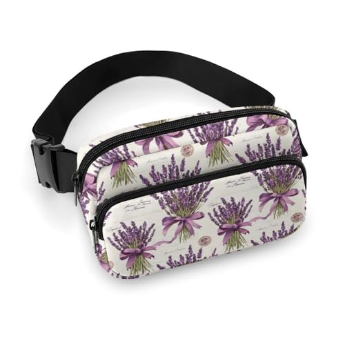Fanny Packs for Women Men Cross Body - Purple Lavender Print Small Crossbody Bags for Women Men, Belt Bag Waist Packs for Workout Travel Running with Adjustable Strap