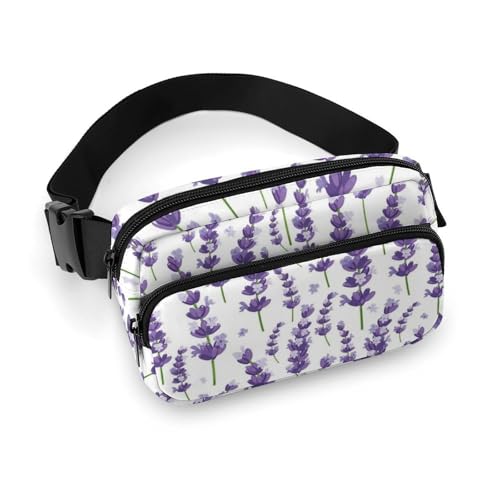 Lavender Flowers Purple Fashionable Fanny Pack Waist Bag for Women Men Multipurpose Croose Body Purse with Adjustable Strap for Workout Running Hiking, Lavender Flowers purple, One Size