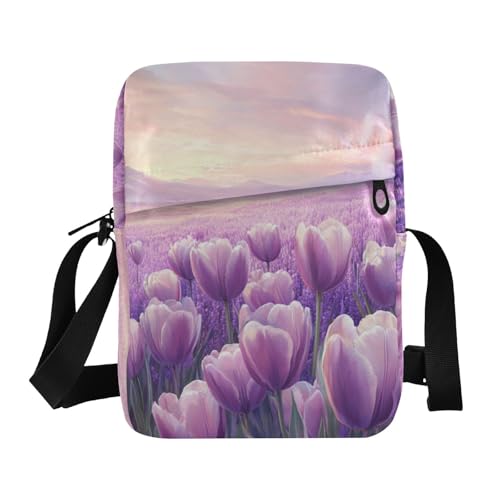 tulips Lavender Spring Purple Cross Body Bag for Womens Trendy with Adjustable Strap Nylon Small Crossbody Phone Bag Have a meal