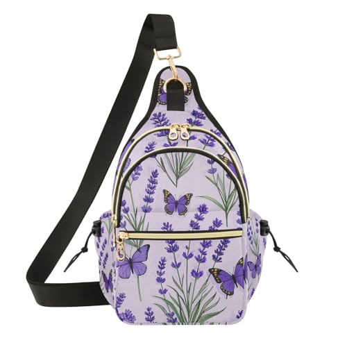 Womens Cross Body Bags Anti Theft Mens Fanny Pack for Running,Fishing Purple Lavender with Butterflies