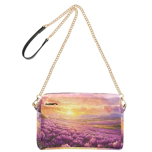 Purple Lavender flower Garden Fashion Woman Handbag Shoulder Strap Vegan Leather Cross Body Purses Waterproof Shoulder Bag