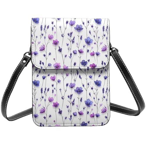 Purple Flowers and Lavender Print Small Crossbody Bags for Women, Small Purses Leather Cell Phone Cross Body Bag