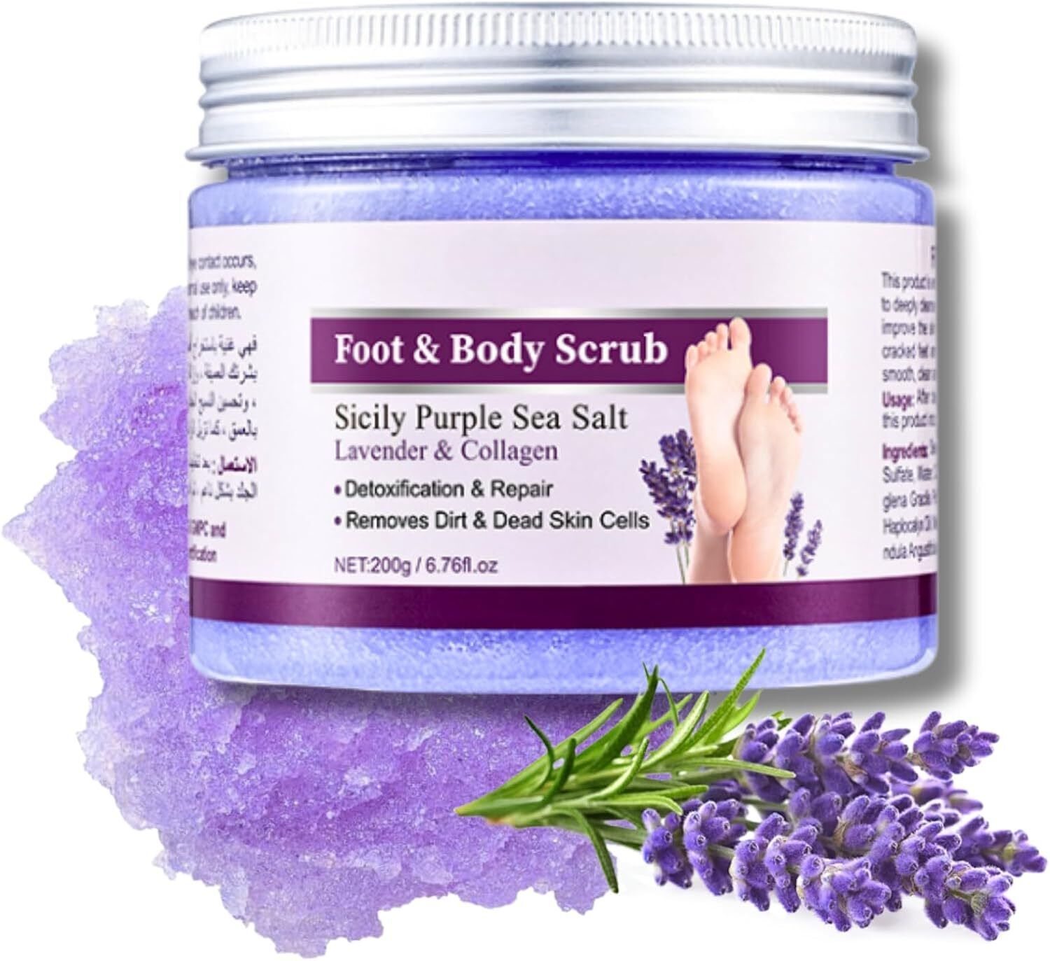 Lavender Foot & Body Scrub, Purple Sea Salt, Large-capacity Lavender Body Scrub
