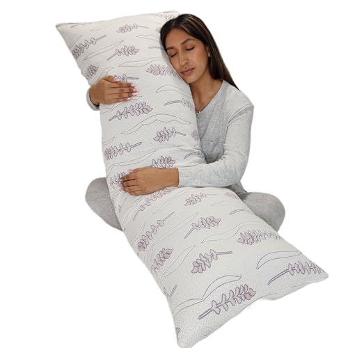 Lavender Luxury Full Body Pillow for Adults, Soft and Breathable Memory Foam Long for Sleeping, Pregnancy Side Sleeper, Includes Cover, 20x54 Inch, Made in USA GREENGUARD Gold