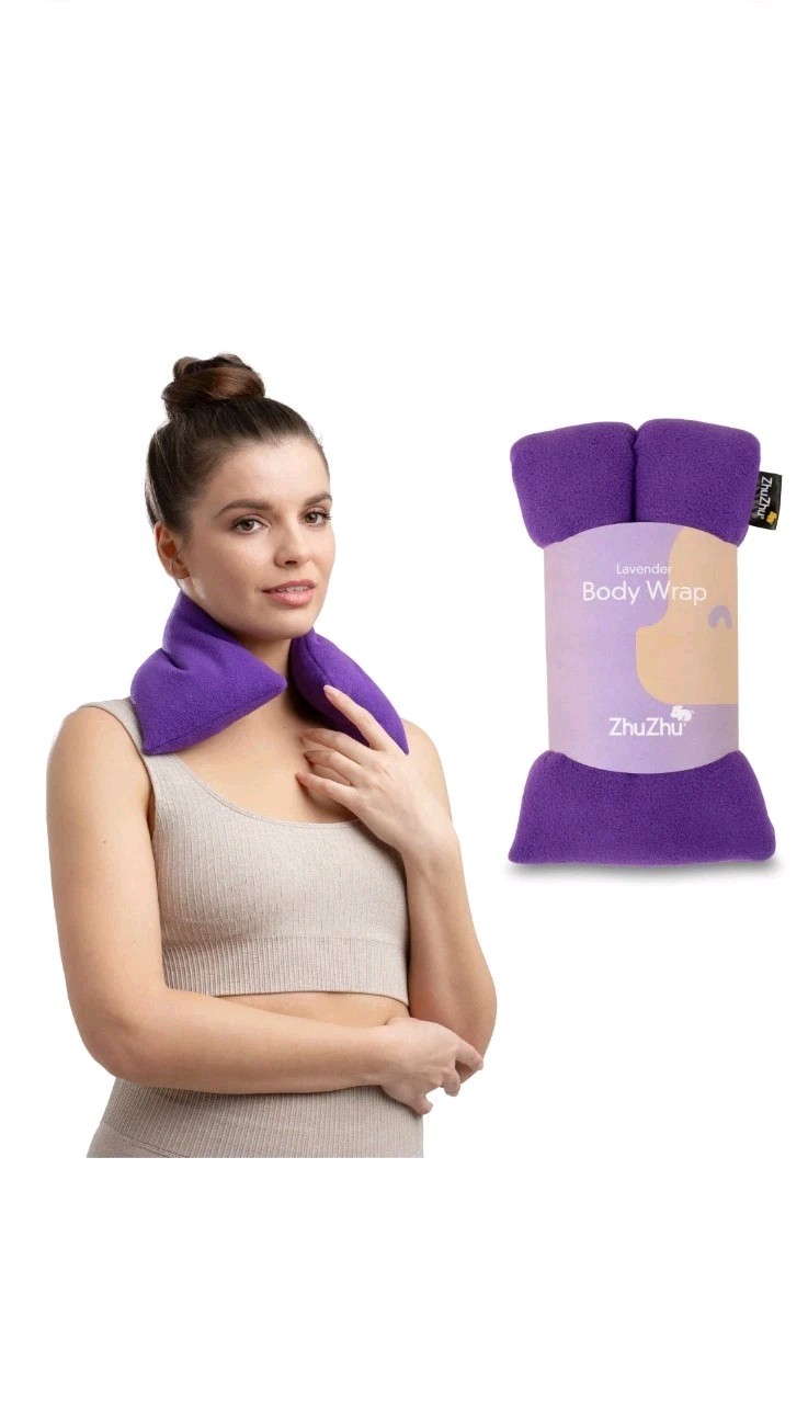 Zhu-Zhu Lavender Body Wrap Wheat Bags Microwavable - Microwave Heat Pad for Joint & Muscle Pain Relief, Neck and Shoulder Pain, Menstrual Pain, Stress - Reusable Hot & Cold Heat Pack - Purple Fleece