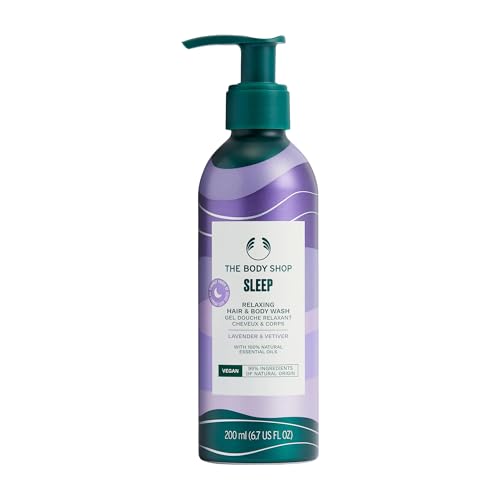 The Body Shop Sleep Relaxing Hair & Body Wash (1x 200ml), Aromatic Cleanser with Lavender & Vetiver Essential Oils, Vegan Body Wash for Bedtime Routine, 95% Natural Origin Ingredients