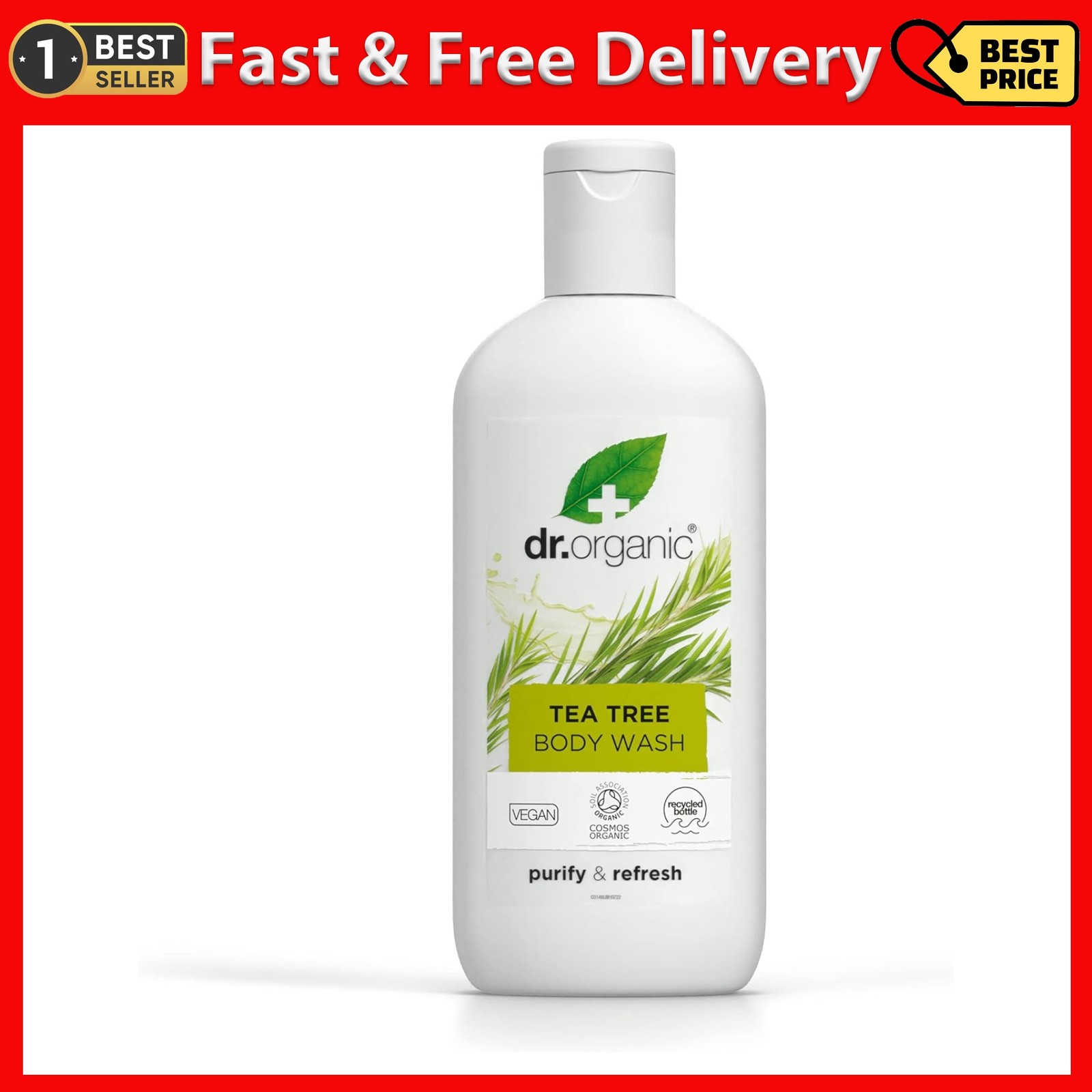 Dr Organic Tea Tree Body Wash, Shower Gel, Natural, Vegan, Cruelty-Free, Paraben & SLS-Free, Recyclable & Recycled Ocean Bound Plastic, Certified Organic, 250ml, Packaging may vary