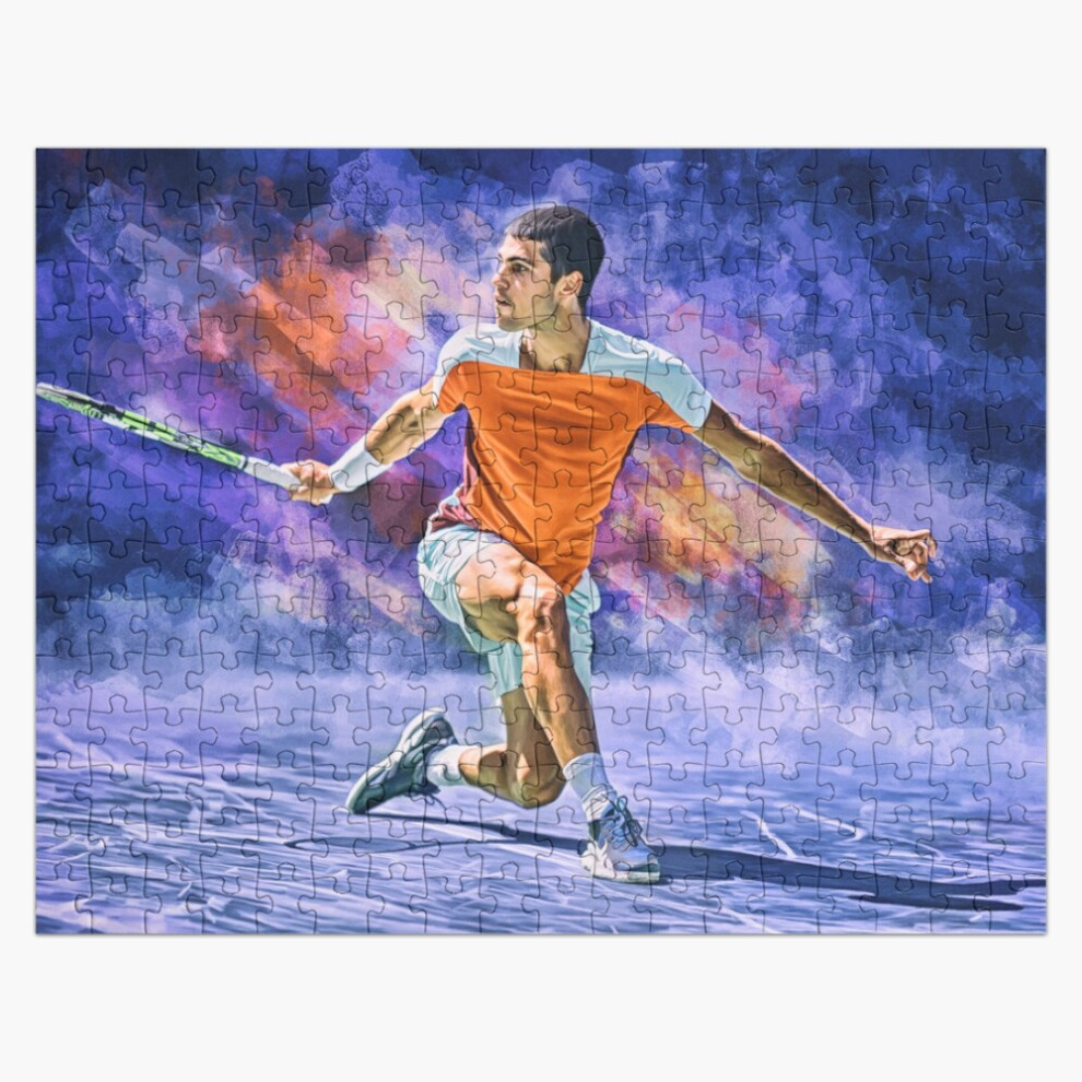 (Carlos Alcaraz plays at US Open 2022. Digital artwork wall poster. Tennis fan art gift.=8143) Jigsaw Puzzle Wooden 300-Piece for Adults Kids Seniors-