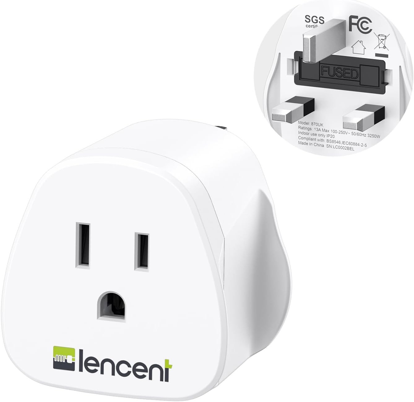 LENCENT US to UK Plug Adapter, 2/3 Pin USA to 3 Pin UK Plug Adaptor, American/Me