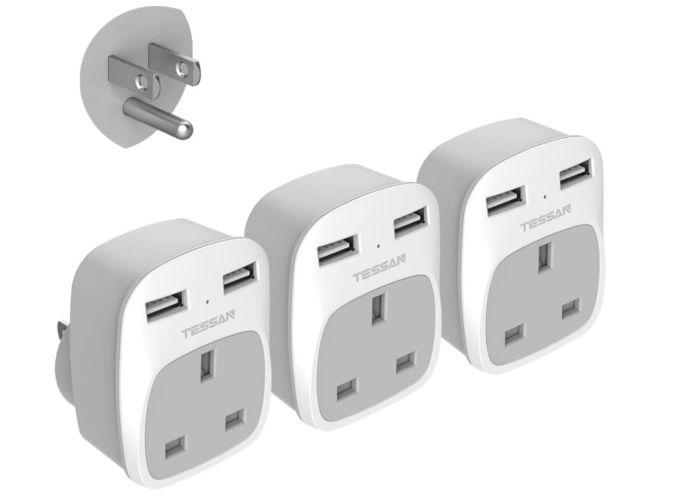TESSAN UK to US Plug Adapter 3 Pack, American Plug with 2 USB, 3 in 1 American Travel Adapter UK to US, Mexico, Canada, Thailand, Colombia, Cuba etc (Type B)