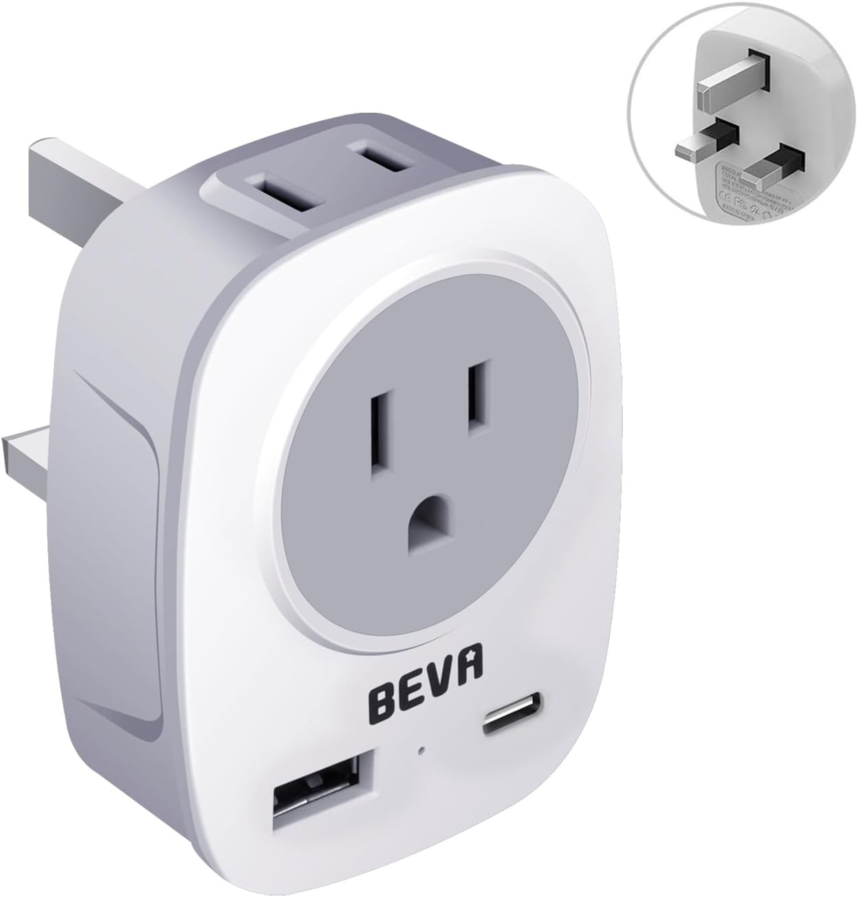 US to UK Plug Adapter, BEVA 2/3 Pin USA to 3 Pin UK Travel Adaptor with 2 USB S