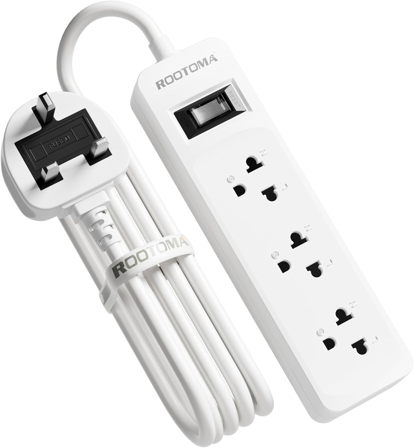 US to UK Plug Adapter 3 Outlets for American/European Sockets-1.5M