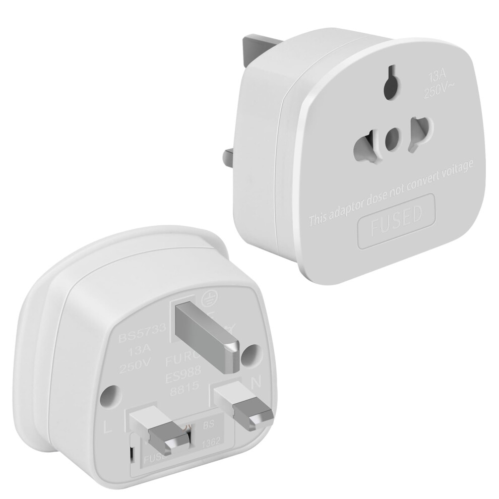 US to UK Travel Adapter With Fuse, USA Europe Australia to 3 Pin UK Plug