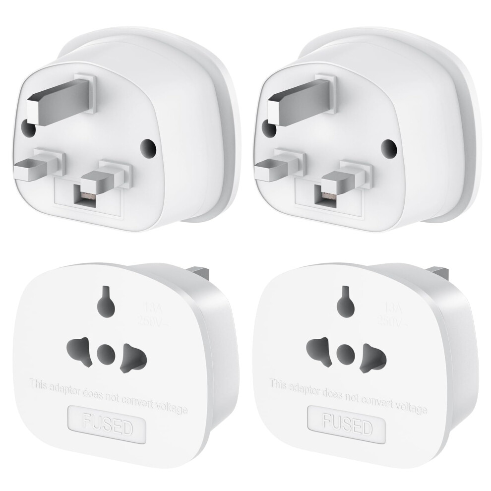 4 Pack European to UK Plug Adaptor, US to UK Travel Plug Adapter with 13A Fuse f